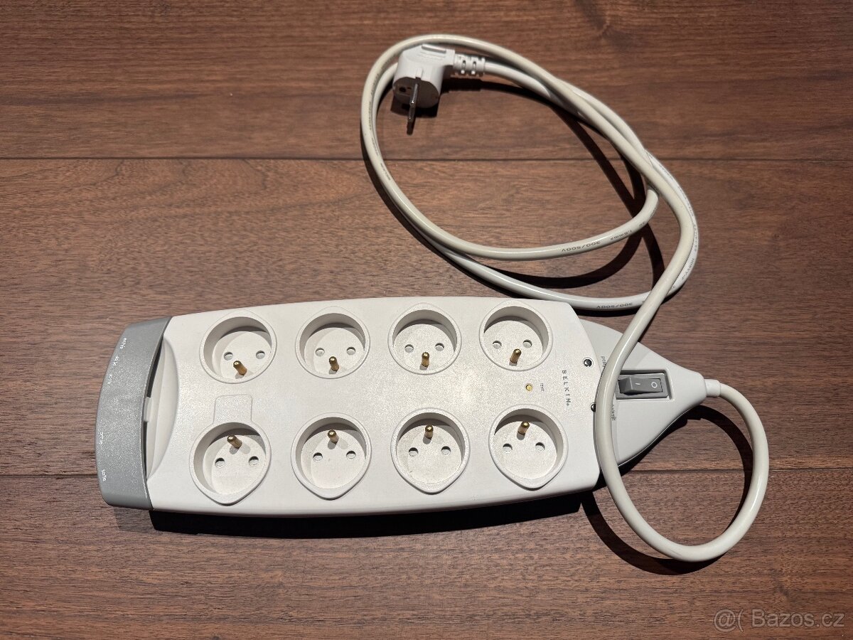 Prodám přepěťovou ochranu Belkin, lze chránit i koaxiální rozvody a telefonní linky, délka přívodního kabelu 2 m, lze připojit až 8 zařízení.