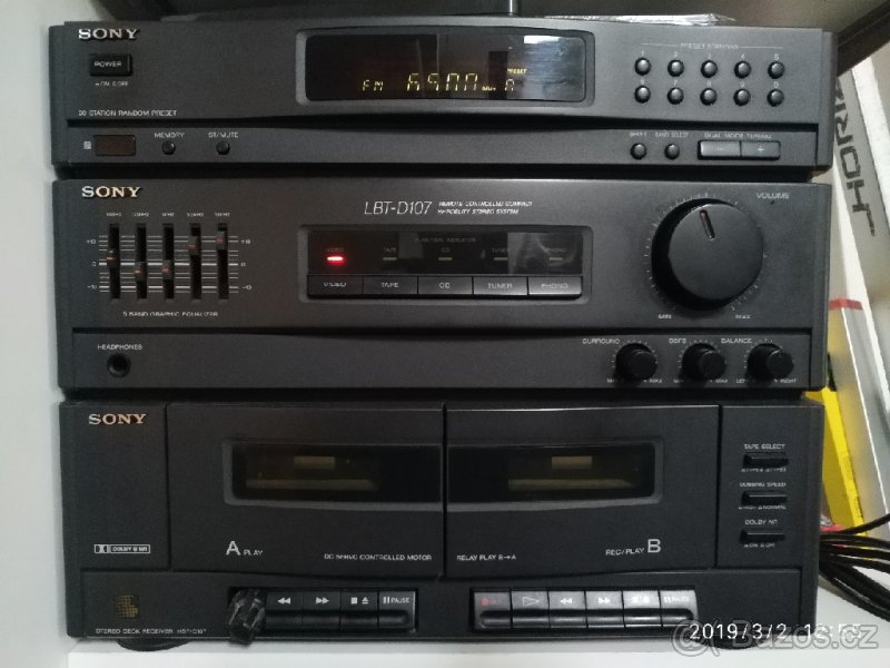 Hifi věž SONY - [2.1. 2026]Téměř padesát let stará věž SONY, funkční. Po zapnutí funguje celá, po nějaké době přestanou fungovat některá tlačítka, z dálkového ovladače funguje vše.