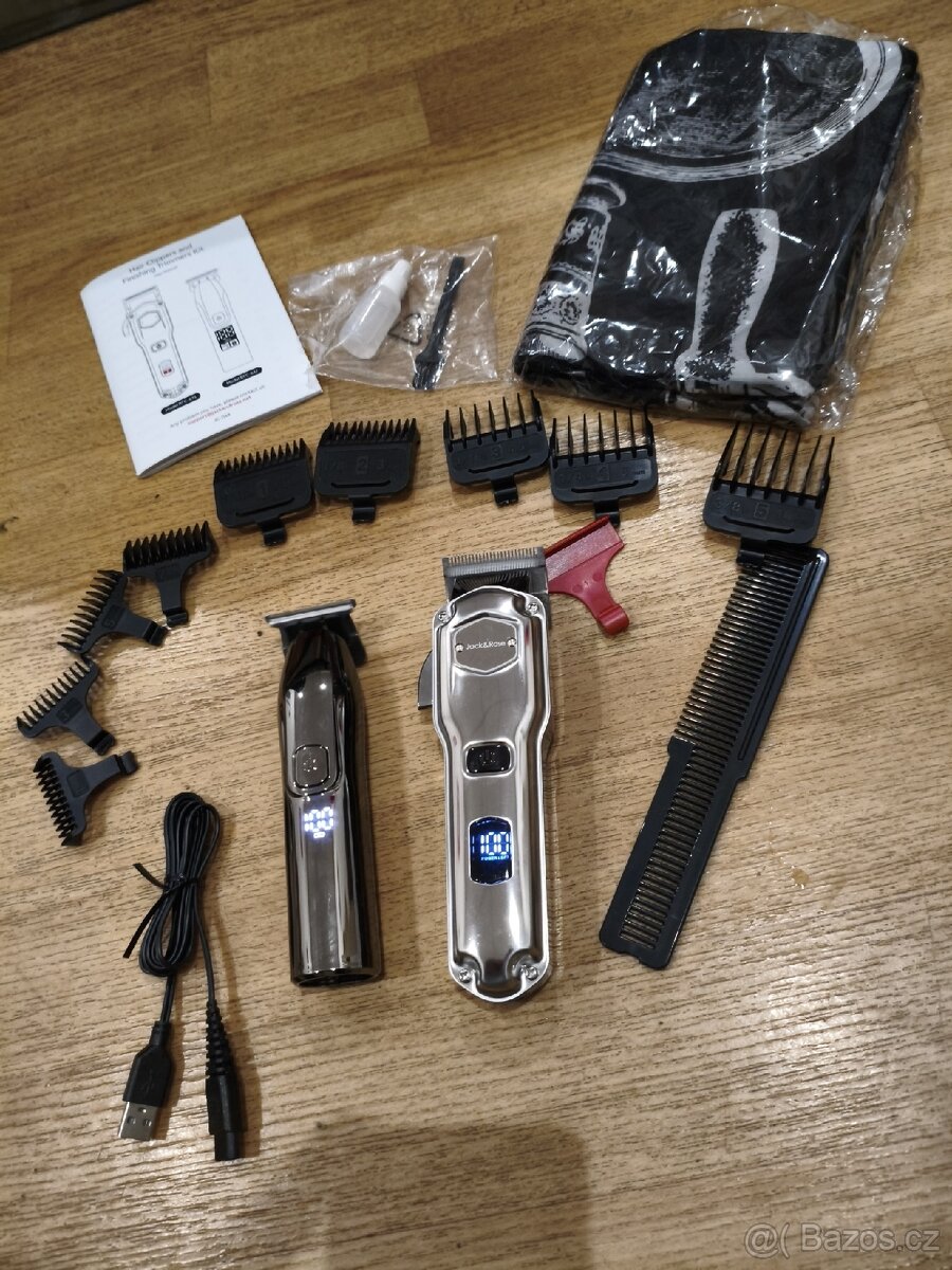 Ahoj všichni, prodám dva profesionální zastřihovače vlasů se dvěma displeji. Každý strojek má jeden displej zobrazující zbývající kapacitu baterie. Dodává se s nabíječkou. Dodává se s pláštěnkou. Obsahuje všechny nástavce na zastřihování