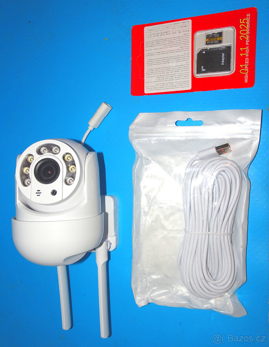Napájecí kabel 8.m dlouhý + paměťová karta 512 GB, s funkcí PTZ (360° + ZOOM),