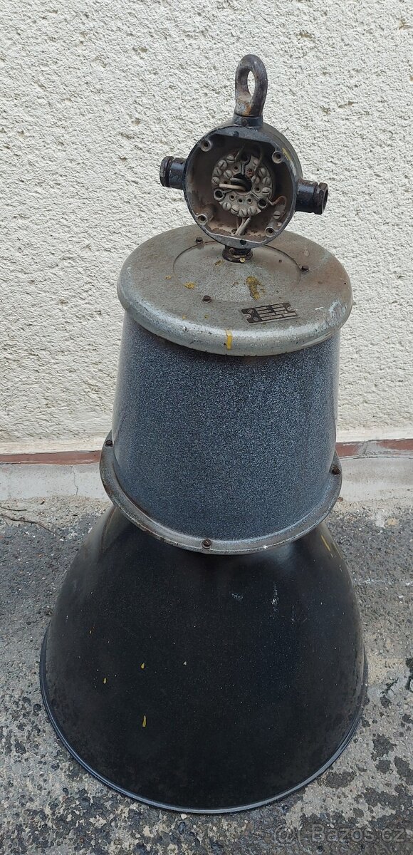 Prodám retro, industriální, vintážní, průmyslová... závěsná svítidla Elektrosvit 24 251 pro rtuťovou výbojku 250W. Svítidla jsou v dobrém stavu, jen mírně zacákaná od barvy a s lehkou korozí na dílech bez povrchové úpravy, chybí víčko svorkovnice. Funkčnost nezkoušena, výbojky chybí. Výška cca 90 cm, průměr 55 cm, hmotnost asi 15 kg. K dispozici 2 ks za cenu 1000 Kč/ks. Osobní odběr v Želechovicích u Zlína.