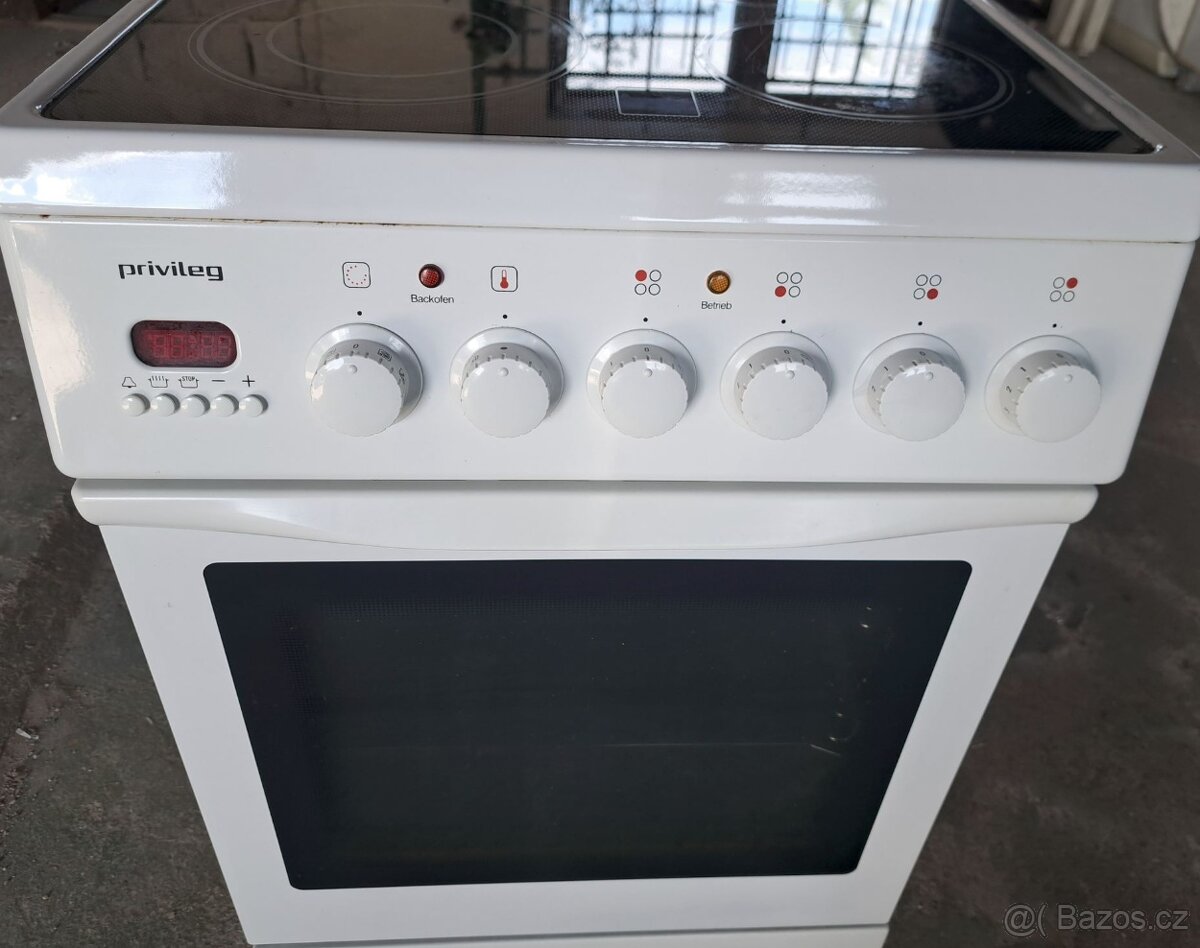 sklokeramický sporák s minutkou, kabel 220V - [22.12. 2025]Úzký sklokeramický sporák s minutkou pro přesné vaření. Na šířku má 50cm. Používat lze ihned, má kabel do zásuvky. Trouba multifunkční s ventilátorem. Rychlé plotýnky a jedna je dvojitá. Vše funkční. Značka Privileg
