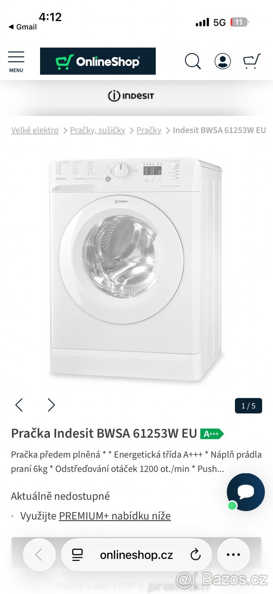 Prodám pračku z důvodu nevyužití, minimálně používaná, stáří 3 roky (jako nová).