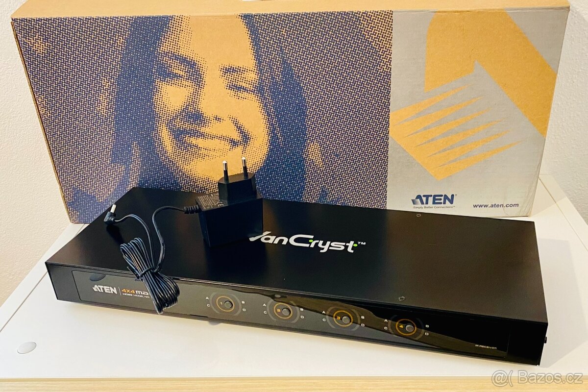Prodám HDMI matici Aten VM0404H typu 4x4 (umí poslat jakékoliv 4 HDMI vstupy na jakékoliv 4 HDMI výstupy). Podporuje FullHD. Matici lze ovládat buď tlačítky na předním panelu, nebo z počítače přes RS232 port. Matice byla velmi málo používaná. Součástí je nový napájecí adaptér. Záruka 3 dny (od doručení) na vyzkoušení.