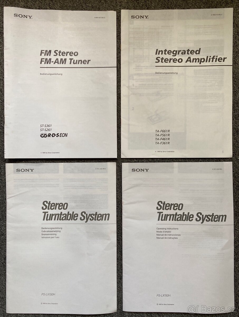 Nabízím k prodeji originál manuály ( většinou v němčině ) k tuneru Sony ST série, zesilovači SONY TA série a gramofonu Sony PS-LX150H.