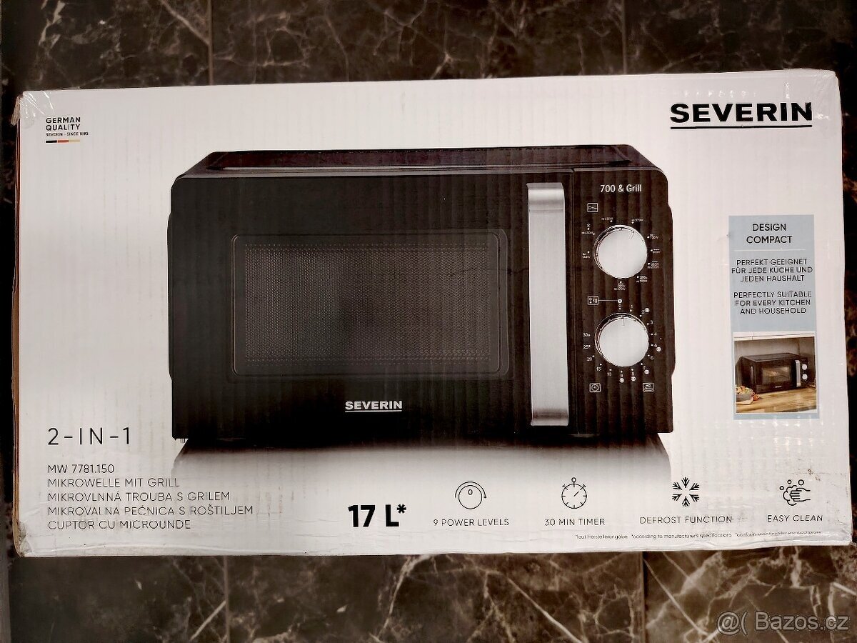 Mikrovlnná trouba - Severin 9675 - pěkná - [26.12. 2025]Mikrovlnná trouba Severin 9675, varianta 3v1, s grilem a cirkulací horkého vzduchu, stříbrná, výkon mikrovln/grilu/horkého vzduchu 800/1200/1200W, kapacita 23 litrů, průměr talíře 27 cm, 5 stupňů výkonu, 10 automatických programů, elektronické ovládá ...