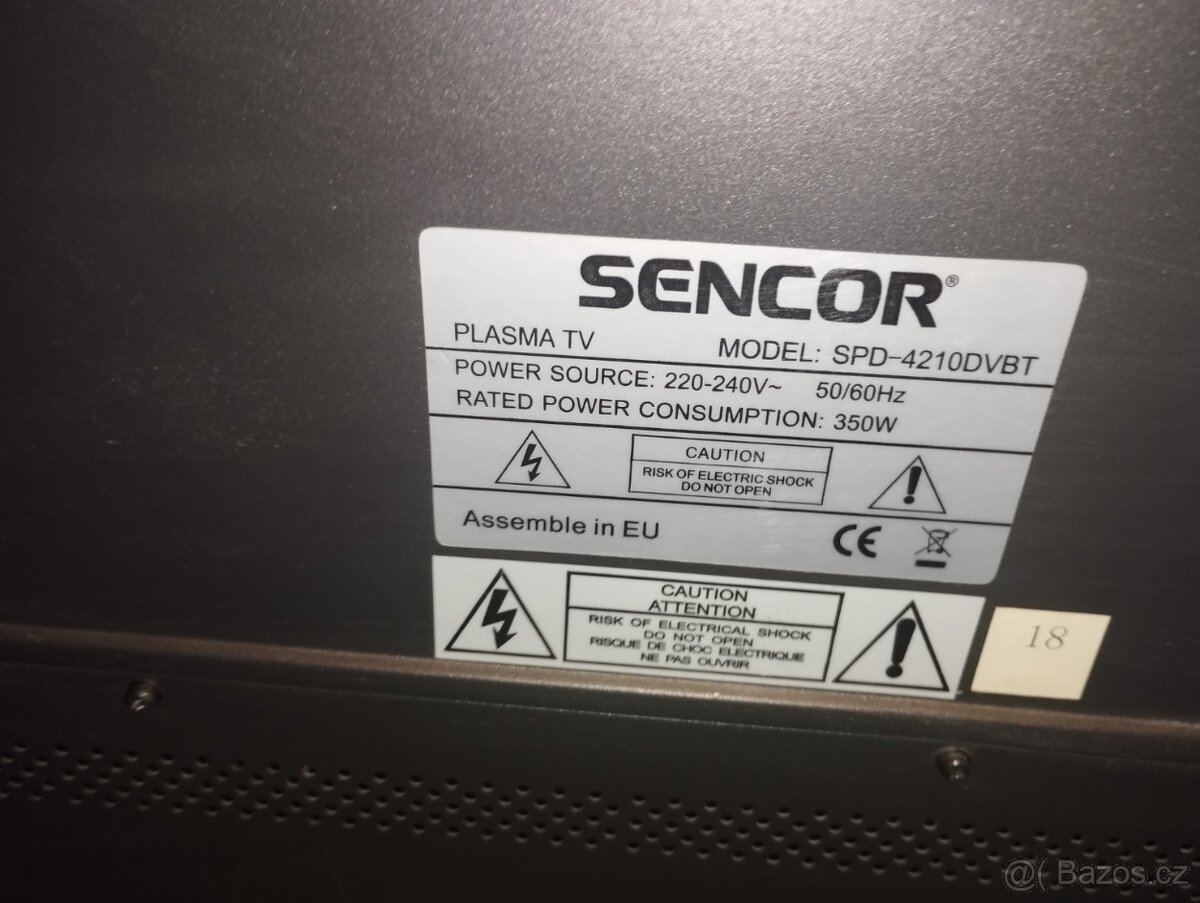 Sencor spd 4210 (plazma), úhlopříčka 107cm, bez ovladače jinak funkční.