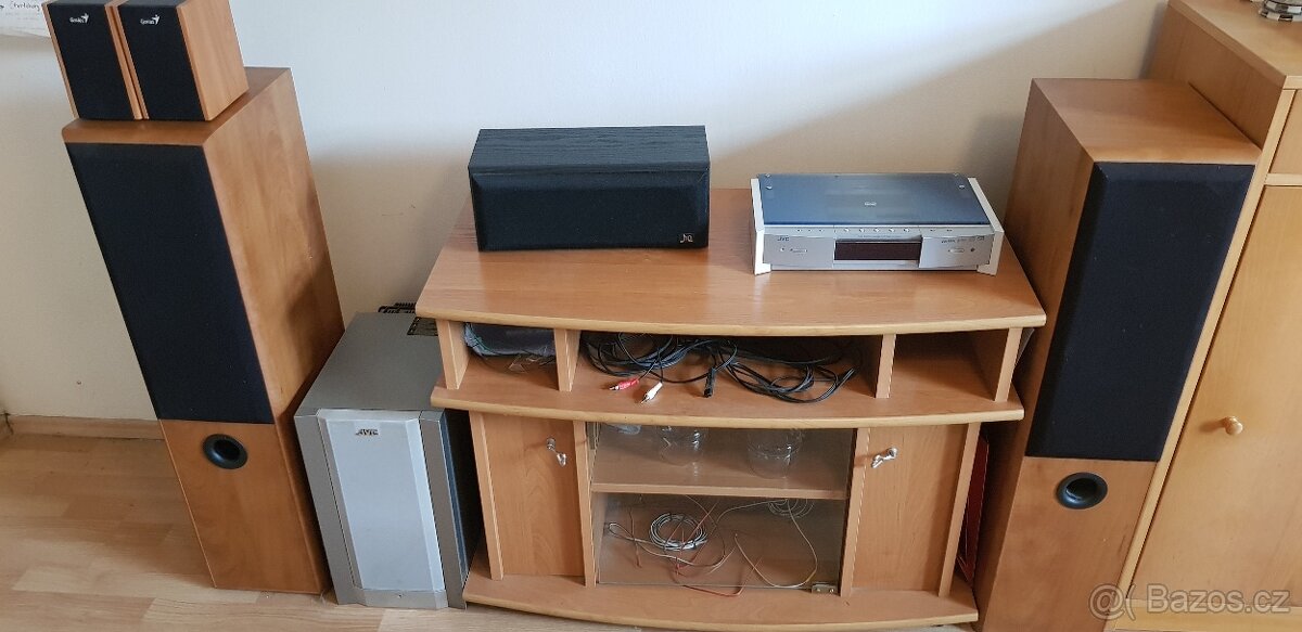 Prodám kompletní reprosoustavu JVC – vše, co je na fotce kromě stolku.