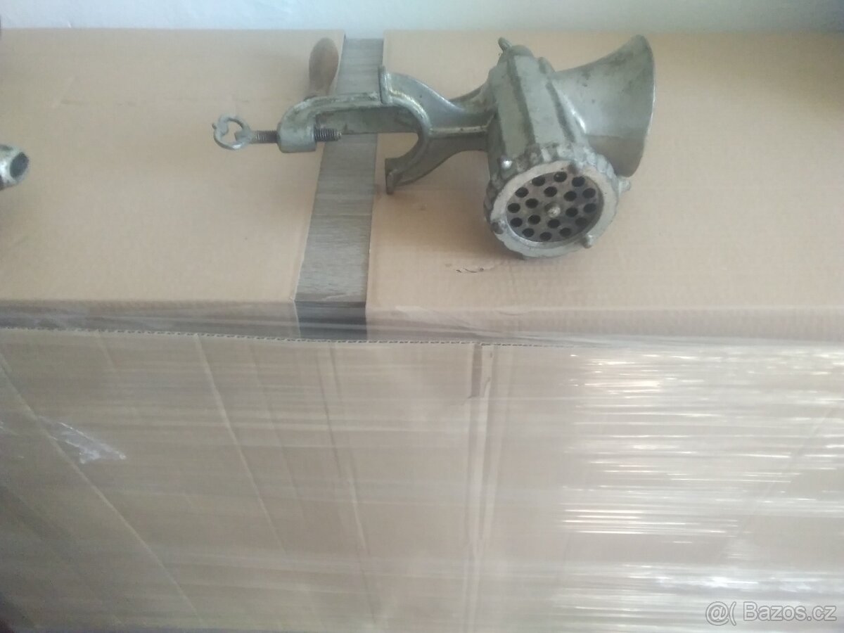 Prodám, starý mlýnek na maso chybí nůž, cena 200kc tel. 704718640 Melnik