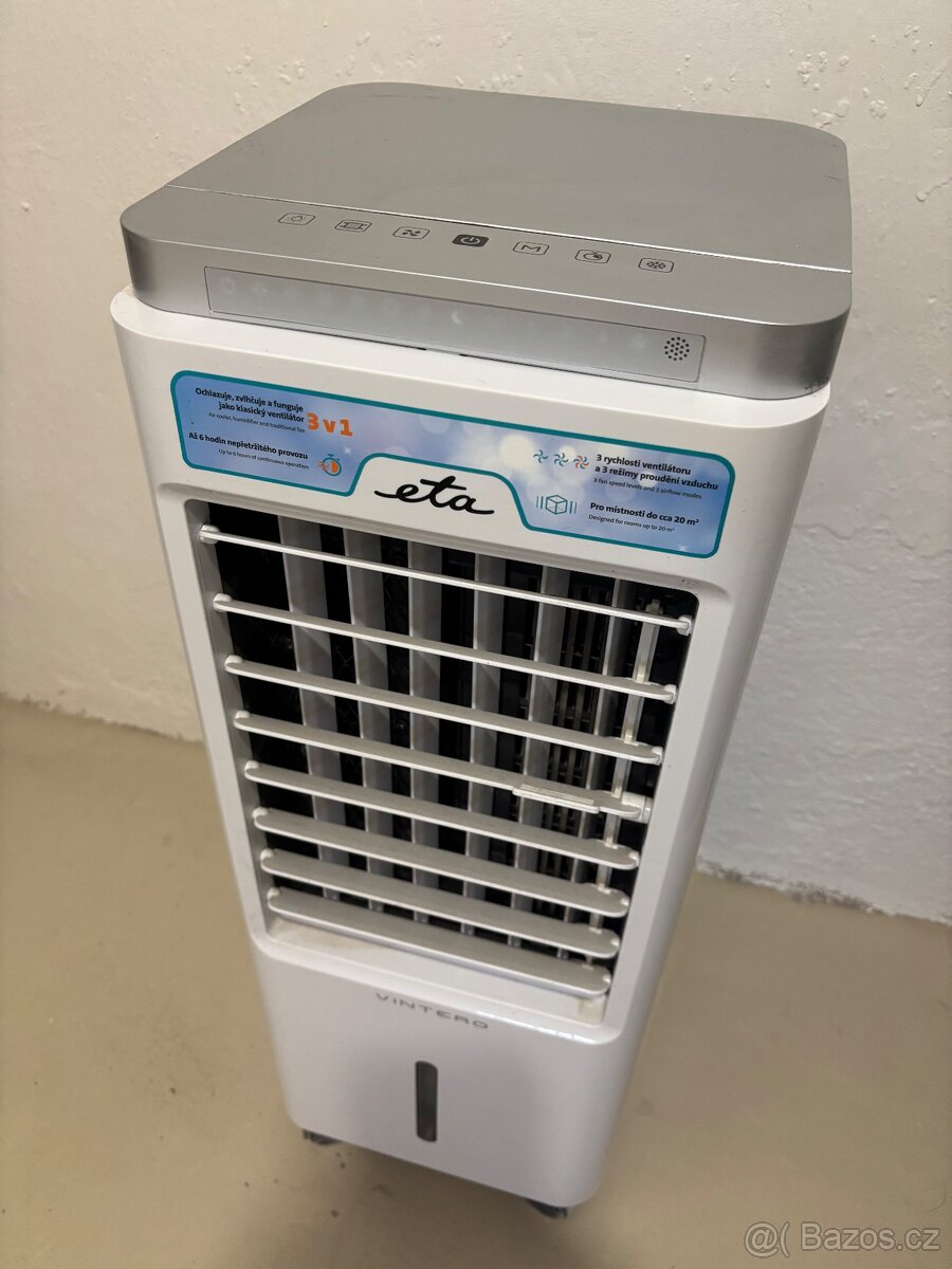 Prodám ochlazovač vzduchu 3 v 1 • ochlazovač, zvlhčovač, ventilátor • pro místnosti velké až 20 m2 • příkon 65 W • vzduchový výkon 14,9 m3/min • 5,6l nádrž na vodu • ukazatel hladiny vody • 3 rychlosti ventilátoru • 3 režimy proudění vzduchu: normální, spánkový, přírodní • oscilace • časovač • až 6 hodin nepřetržitého provozu chlazení • max. hlučnost 63 dB • čtyři pojízdná kolečka • dálkové ovládání • hrubý omyvatelný filtr • baterie do ovladače součástí balení • délka napájecího kabelu 1,7 m • hmotnost: 5,9 kg • rozměry: 71,8 × 26,2 × 27,8 cm