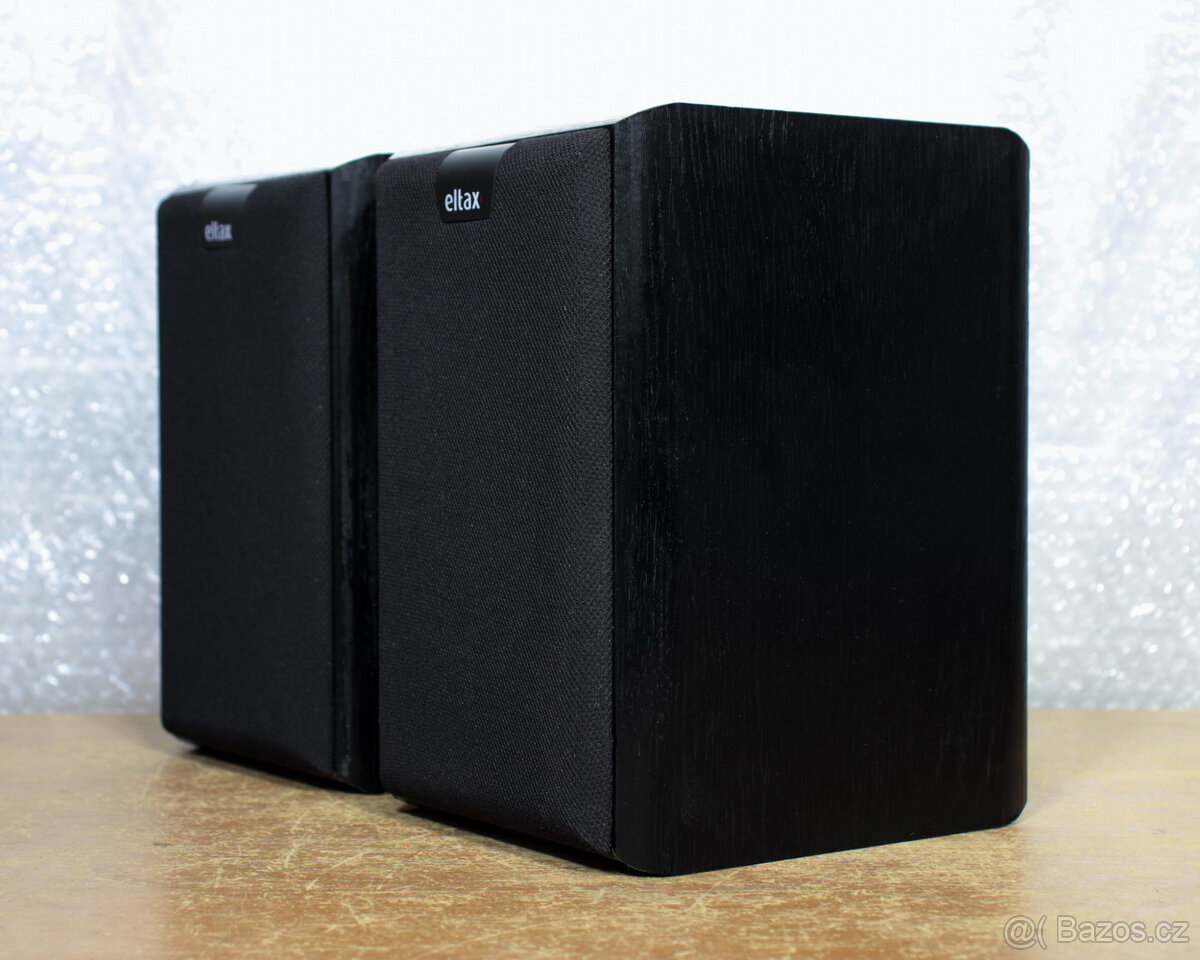 Dánské reprobedny Eltax Hollywood. Poctivé provedení, moderní design a konstrukce reproduktorů, tuhý korpus, možnost zavěšení na zeď. Dvoupásmové, uzavřené, impedance 8Ω, kmitočtový rozsah 50Hz – 25kHz (70Hz – 20kHz v tolerančním pásmu ±4dB), trvalý příkon 40W, hudební 60W, max. 130W, citlivost 88dB/1W/1m, rozměry 23 x 14,5 x 19cm, hmotnost 2,5kg/ks. Plně funkční, dobrý stav, na spodní straně korpusů zvrásnění povrchu folie, kvalitní, velmi čistý zvuk. Další info v manuálu v pdf (mohu poslat emailem).