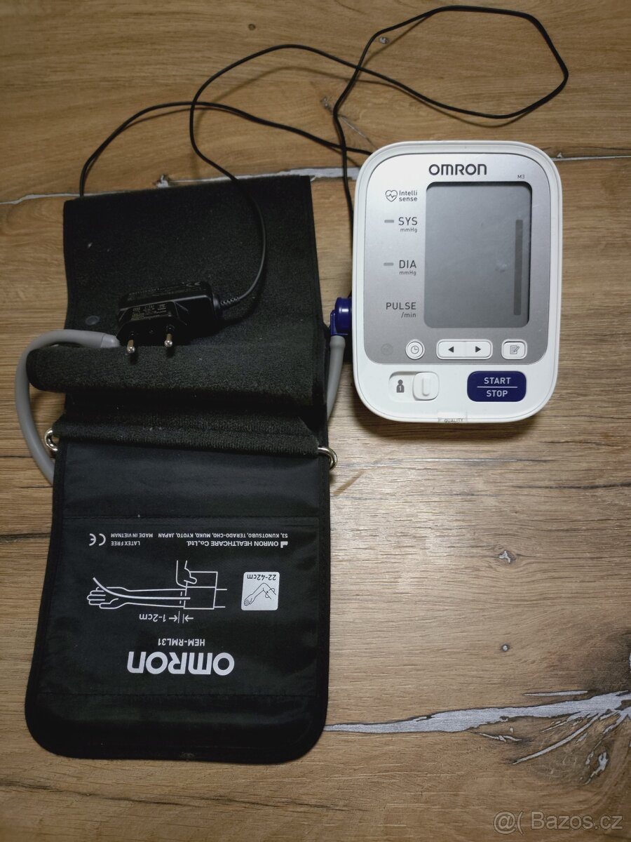 Prodám Tonometr Omron M3 ve 100 %stavu, vše funkční, japonský výrobek patřící k těm lepším přístrojům. Měření pro 2 osoby- 60 záznamů pro každou osobu, napájení na baterie nebo na adaptér, který je součástí setu.