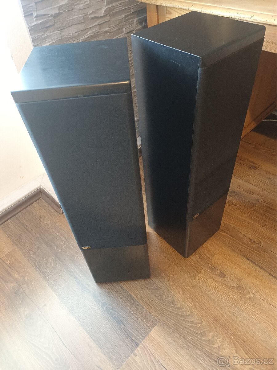 Dovolím si nabídnout do prodeje své menší sloupové reproduktory od společnosti TSM. Opět zdůrazním, že na západ od nás velice známá značka. Samozřejmě, že kvůli menším rozměrům nečekejte , že basy budou veliké..za mě dostačující do menší místnosti a celkově TSM hraje velmi příjemně a čistě. Po technické stránce vše v pořádku, pouze u jedné bedny , chybí u repro terminálu utahovací matice. Při zapojení repro kabelu s banánky, vše funguje jak má. Podrobné technické parametry lze jednoduše dohledat například na Hifi Wiki. Jedná se o 2 pásmový repro..s váhou cca 15 kg..