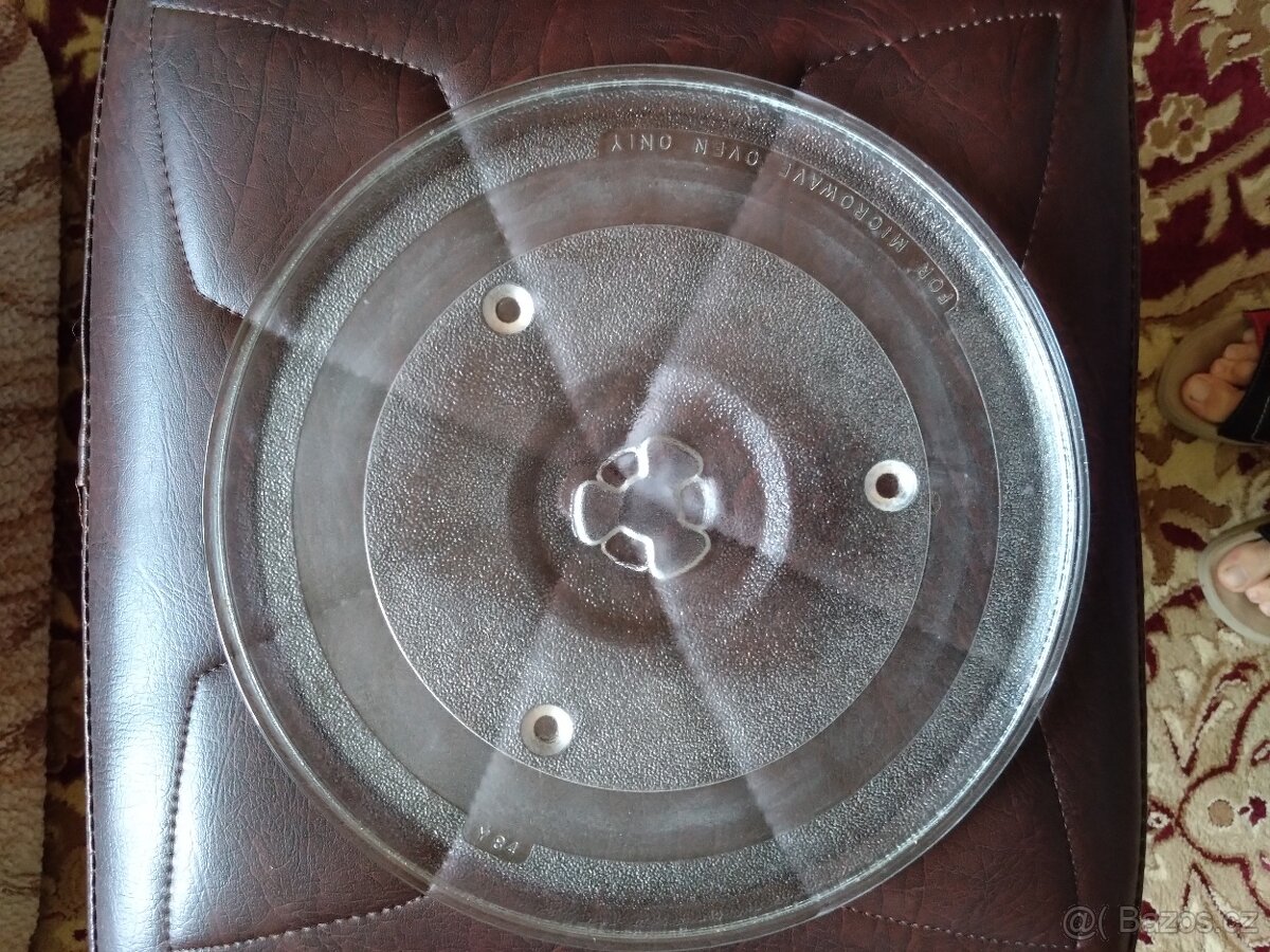 Otočný talíř do mikrovlnky - [17.11. 2025]Prodám skleněný otočný talíř do mikrovlnky včetně vodícího kroužku. Talíř má průměr 27 cm, vodící kroužek má průměr 19 cm.