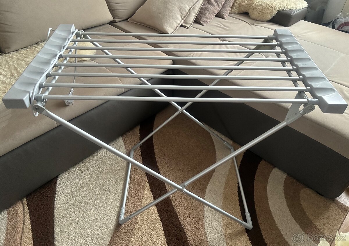 Nabízím nový, plně funkční elektrický sušák. Skládací, 120 W. Rozměry 95x 50 cm, výška 73 cm. K osobnímu vyzvednutí na Praze 9. Původní cena 1190,-Kč.