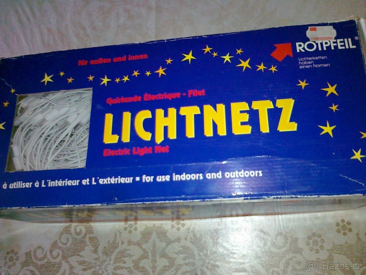 Prodám světelnou síť Lichtnetz venkovní i vnitřní, nová nepoužitá 3,5x 3,5 m, 280 diod 24V vlastní napáječ, spotřeba 60V,+10 náhradních žárovek...žádná Čína