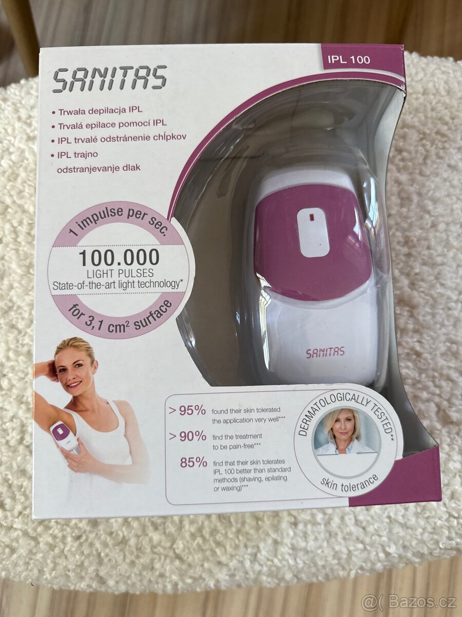 Sanitas IPL 200 - [24.2. 2026]Prodám nový nepoužitý dámský epilátor SANITAS IPL 200 pro trvalé odstranění chloupků. Přístroj nabízí 3 nastavitelné úrovně intenzity záblesku, životnost lampy je 200000 záblesků.