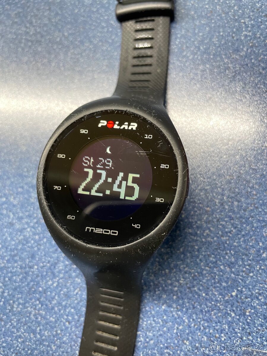 Polar M200 GPS sportovní hodinky silikonový řemínek náhradní náramek černý a červený + krycí folie na sklíčko . Používané , plně funkční, viz foto.
