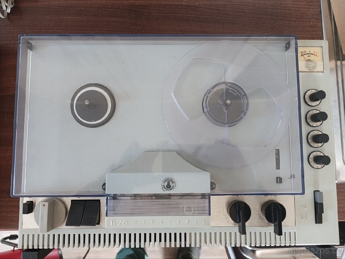 Prodám poměrně zachovalý kotoučový magnetofon Tesla B70. Stav viz foto.