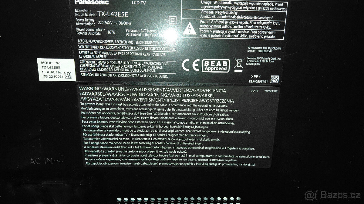 Prodám televizi Panasonic 42" TX L42, universal ovladač, set to box Tesla TE343
