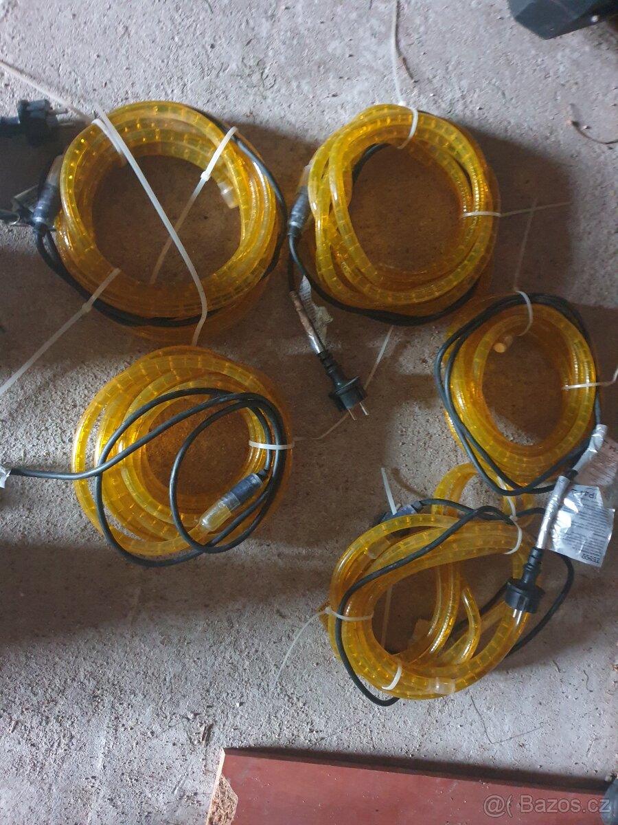 Prodám svítící řetězy 5 kusů délka jednoho kusu 5m cena za vše 300kč více na tel.606138917