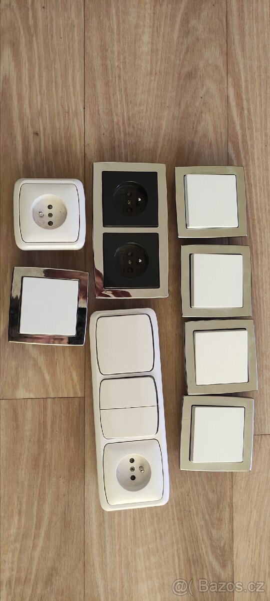 Prodám uvedené zásuvky, vypínače a kouřovou klapku - [22.1. 2026]cena za ks 99,-z první fotky, vypínače od 99,- z druhé fotky, větší s pojistkama 199,-