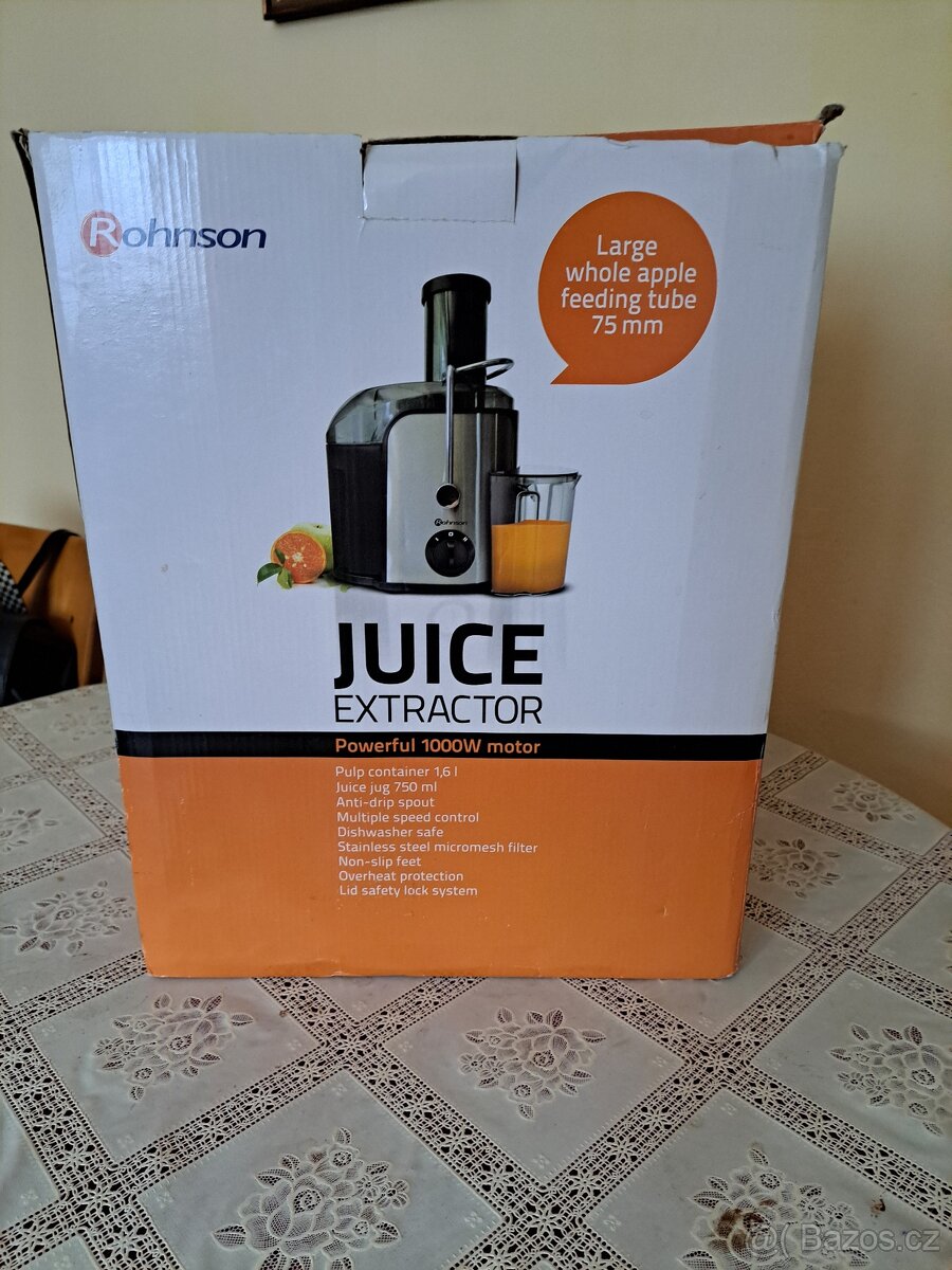 Odšťavňovač Rohnson 850w - [15.2. 2026]Prodám 2x použitý odšťavňovač, plně funkční, výkonný. Pohodlné a bezpečné odšťavňování. Původní cena 1300Kč. Pouze osobního odběr ve Stodůlkách.