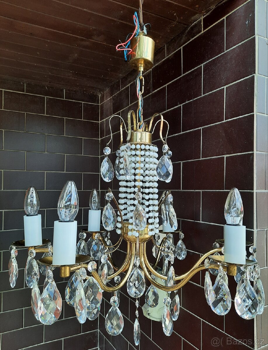 Krásný stav, kompletní. Chybí jen pár bilych kuliček, ale ty se buďto dají doplnit, či pár jich vyndat a řadu vyrovnat. Neposílám, jen osobní vyzvednutí. Lustr je odmontovany, vyvesený je pro foto.