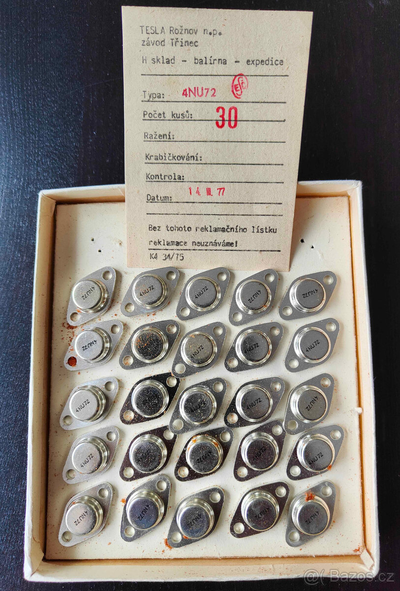 Prodám TESLA Germaniový výkonový tranzistor 4NU72 ( 4 NU 72) k dispozici více ks.
