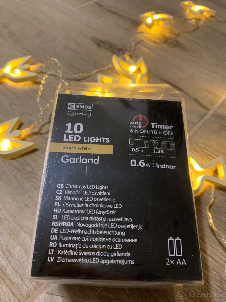 Nové vánoční osvětlení LED andělé 10x, dřevěné, časový spínač Timer 6hod, vnitřní, na baterie 2xAA. Barva tepla bílá. Výprodej skladových zásob