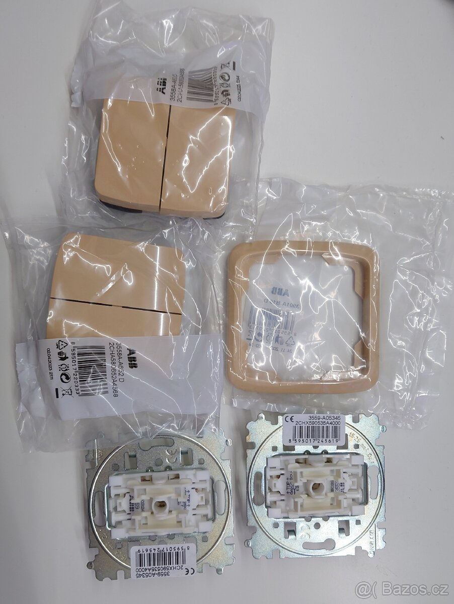 2x vypínač ABB Tango komplet béžová - 200/ 120 Kč (u jednoho chybí dodáno bez rámečku)