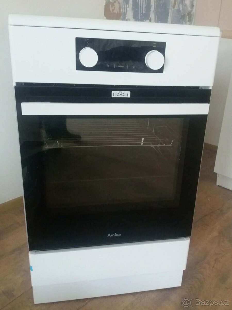 Plynový sporák s elektrickou horkovzdušnou troubou Amica - [3.2. 2026]Prodám zánovní plynový sporák s elektrickou troubou zn. Amica, používaný pouze 1/2 roku. Důvodem prodeje je rekostrukce bytu a úprava kuchyně na indukční sporák. Původní cena 9000,-Kč.