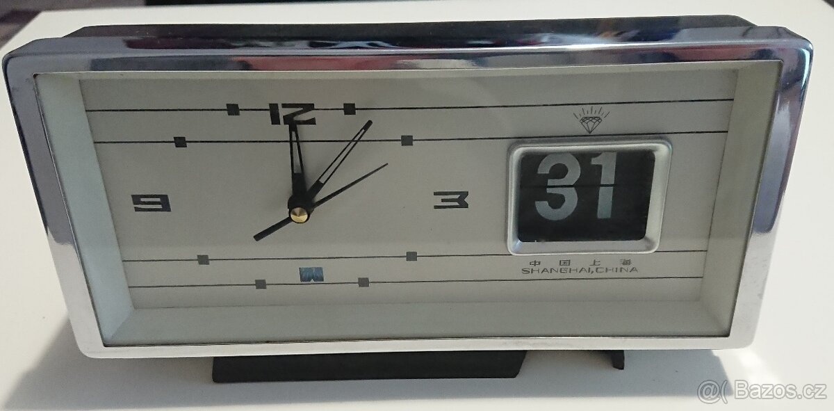 Budík Shanghai China Diamond. Funkční, jen zlomený kousek stojanu.