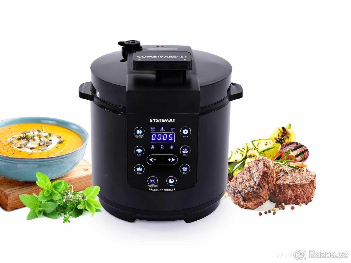 COMBIVAR® EASY – multifunkční tlakový hrnec s 11 programy a 6L BIOPAN® nádobou. Vaří, smaží, dusí i peče zdravě a úsporně. Ušetří až 60 % energie, zvládá i vaření v páře. Praktické síto a snadná obsluha.