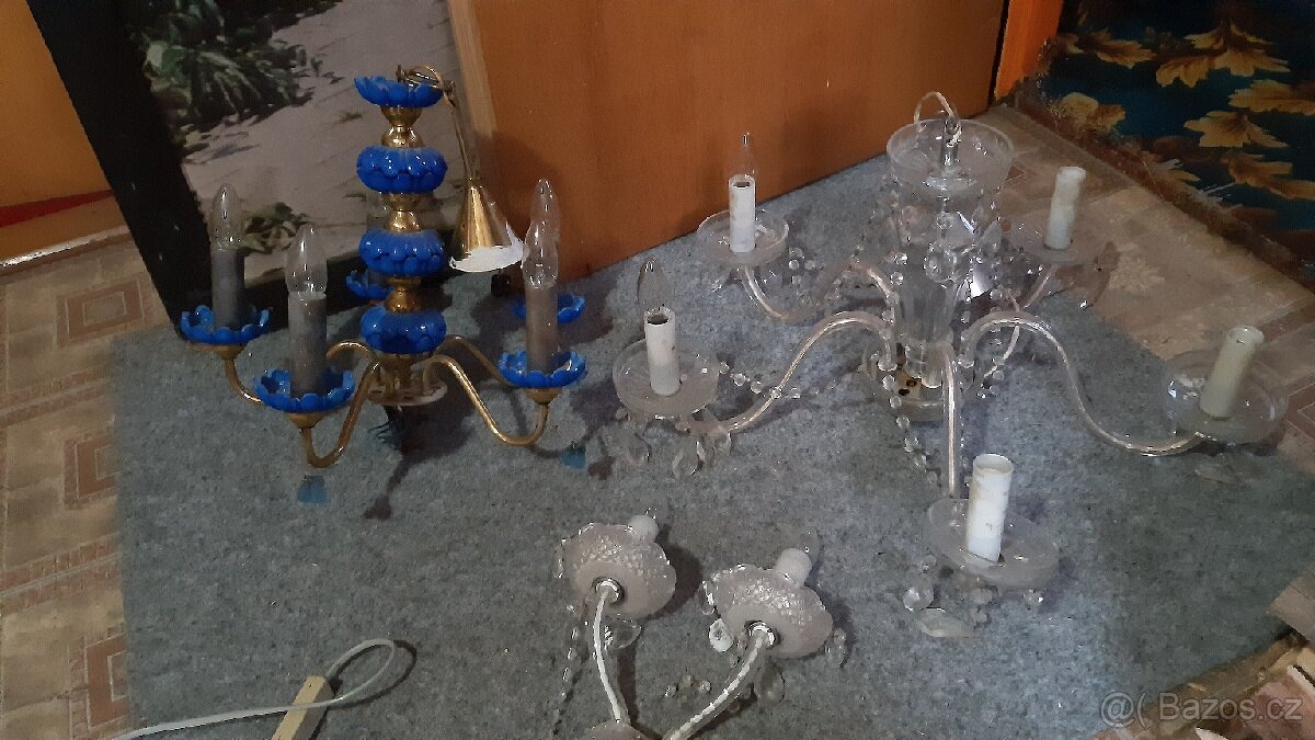 Prodám 2 křišťálové lustry a 1 lampičku. V některých místech nutná oprava. Moc hezké. Jen osobní odběr.