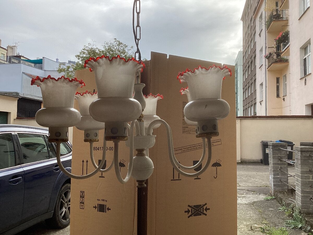 Na 6 žárovek. Jako nový. Stínidla skleněné.