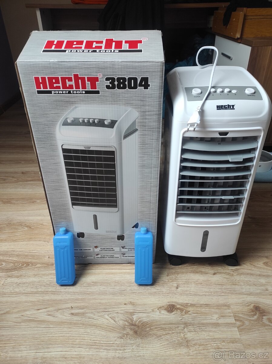 Prodam elektricky ochlazovac vzduchu HECHT 3804,JEDNOU POUZITY,zakoupeny 13.7.2022...Vse v originalni krabici spolecne s dvemi chladicimi vlozkami a navodem.