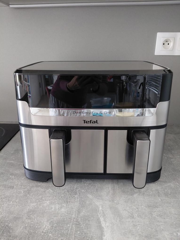 Fritéza Tefal Dual Easy Fry & Grill 8,3 l v záruce - [5.2. 2026]Fritéza horkovzdušná Tefal EY905D10 Dual Easy Fry & Grill 5,2 l + 3,1 l, Použitá cca 3×, plně funkční. Ještě rok v záruce, doklad součástí balení. Stav velmi dobrý, nerezové části mají drobné kosmetické oděrky odpovídající běžnému používání.