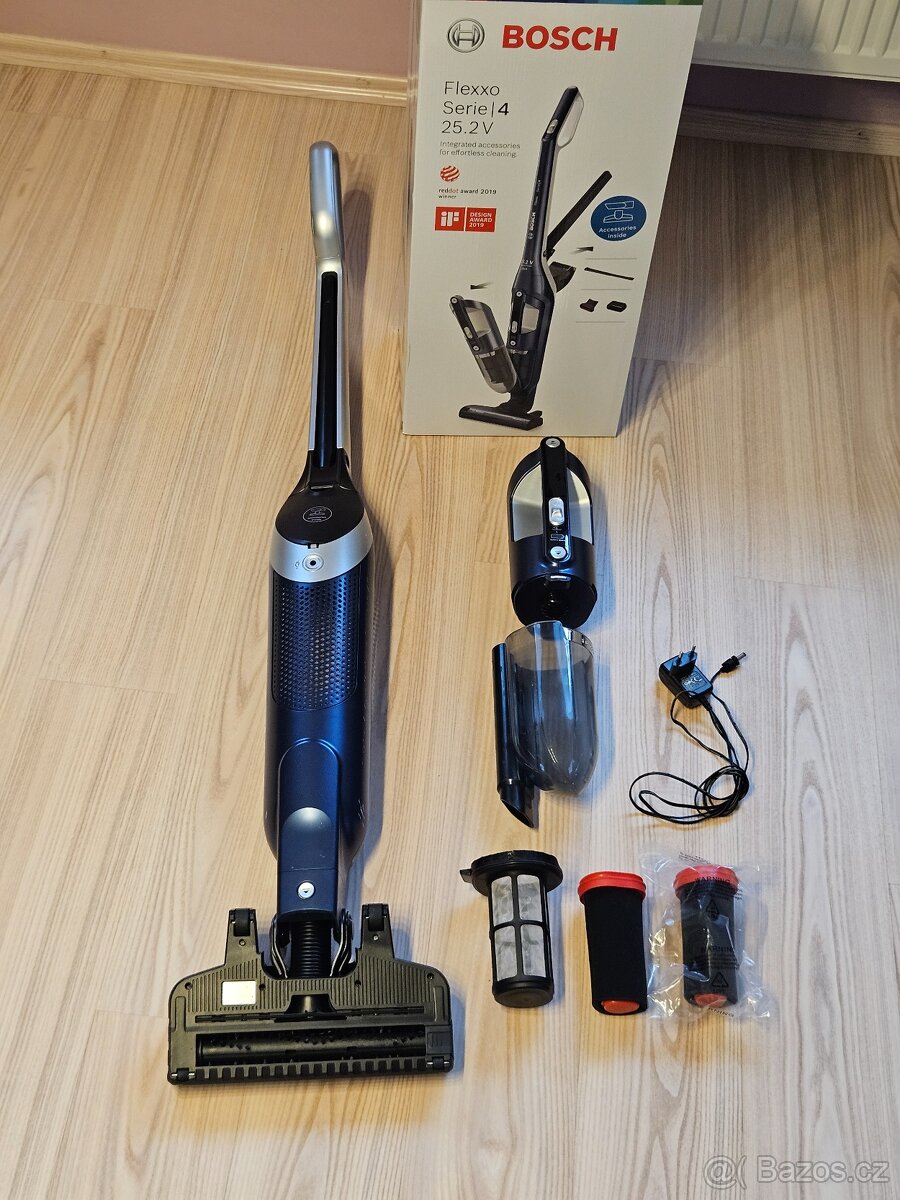 Kompletní příslušenství (kartáč, proloužení, nabíječka), jeden nový filtr ve vysavači, druhý nový přidám, včetně původní krabice