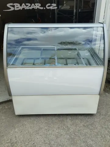 Nabízíme plně funkční vitrínu na 9 van. Spolehlivá, pěkně mrazí, s úložným prostorem navíc. Energeticky nenáročná. Nerez nádoby nejsou potřeba.