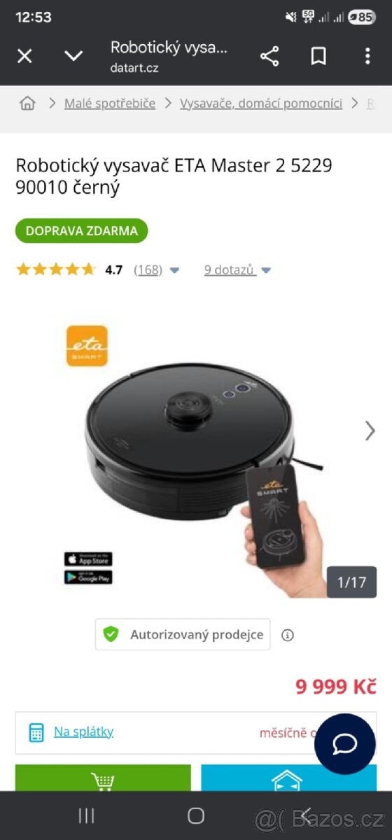 ETA navaggio 2228 90000 - [6.2. 2026]Prodám zánovní párkrát použitý robotický vysavač 2 v 1 byl to dárek bohužel nevyužiji• vysávání i mopování • HEPA filtr • Li-Ion akumulátor • výdrž až 120 min • hlučnost 65 dB • jemný kartáč • boční kartáčky • mopovací nástavec • doba nabíjení 3–4 h ...