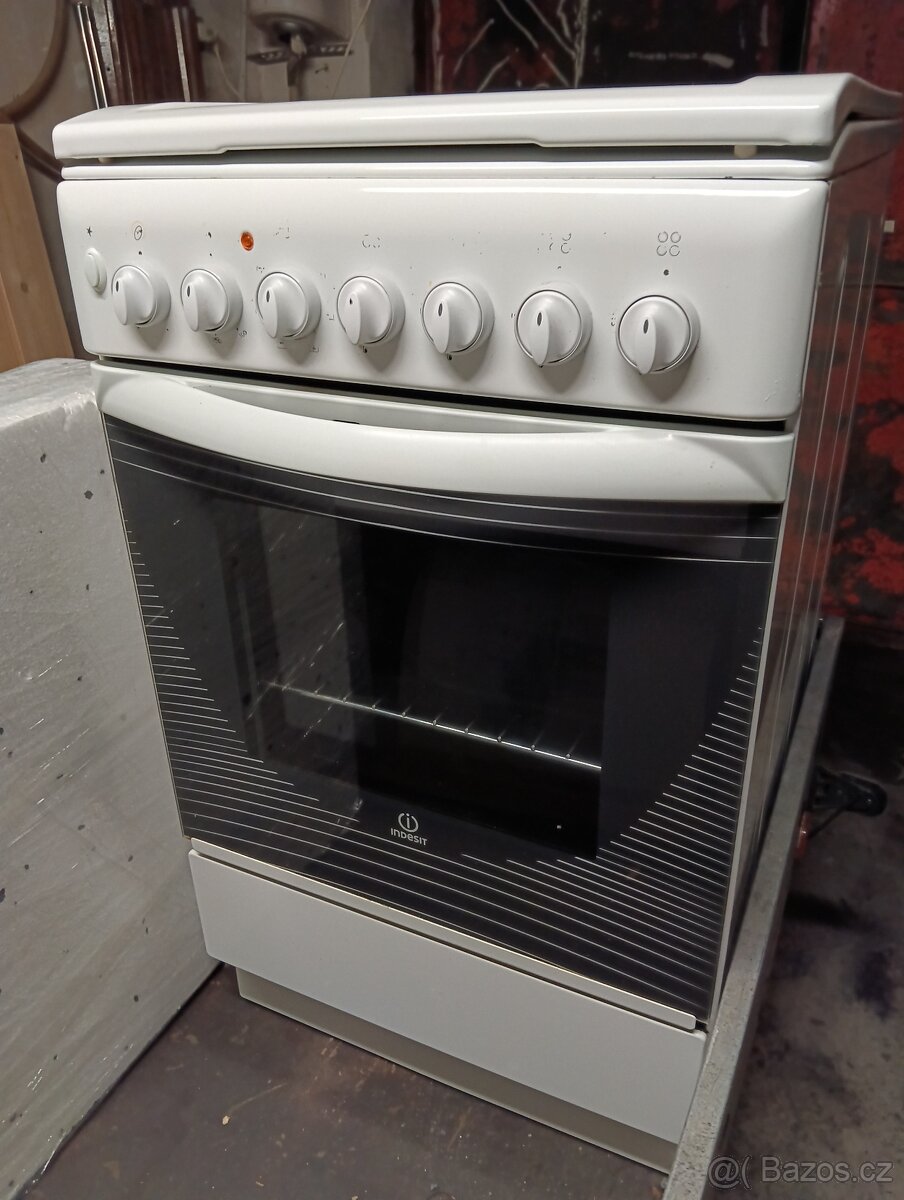 Prodám sporák ve skvělém stavu pouze nám po mytí trochu zmizelo označení plotének viz. foto. Trouba je elektrická plotýnky jsou na plyn.