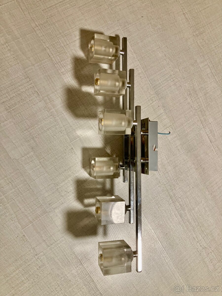 Prodám stropní světlo, včetně držáku k uchycení ke stropu. Součástí je i 6 ks LED žárovek - mix teplé a studené bílé. Kovová konstrukce, skleněné kostky. Rozměr 55 x 14 cm. Cena za vše. Nezasílám poštou, prosím osobní převzetí Pardubice a okolí. Děkuji