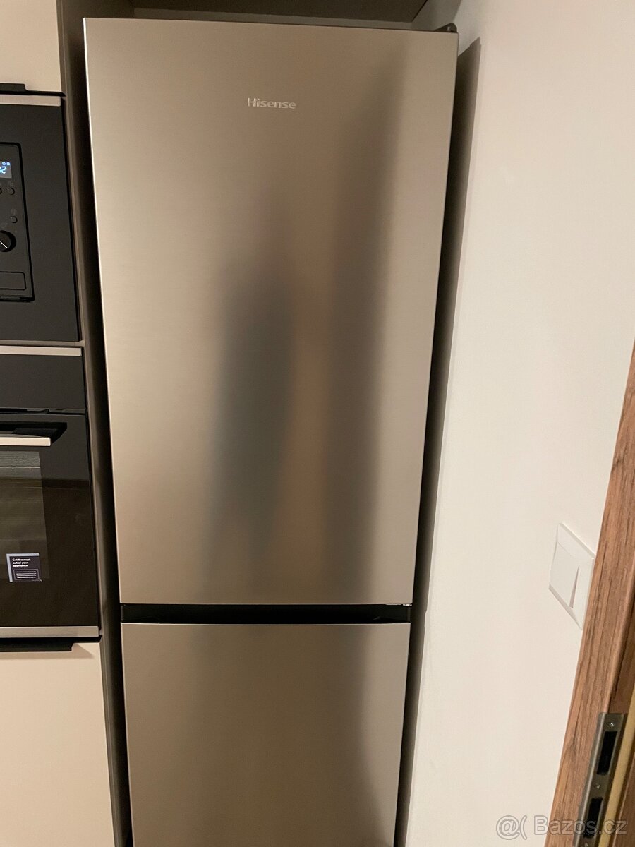 Prodám lednici Hisense. Je to klasická lednice s mrazákem s funkci NoFrost tudíž je beznámrazová, kategorie E.