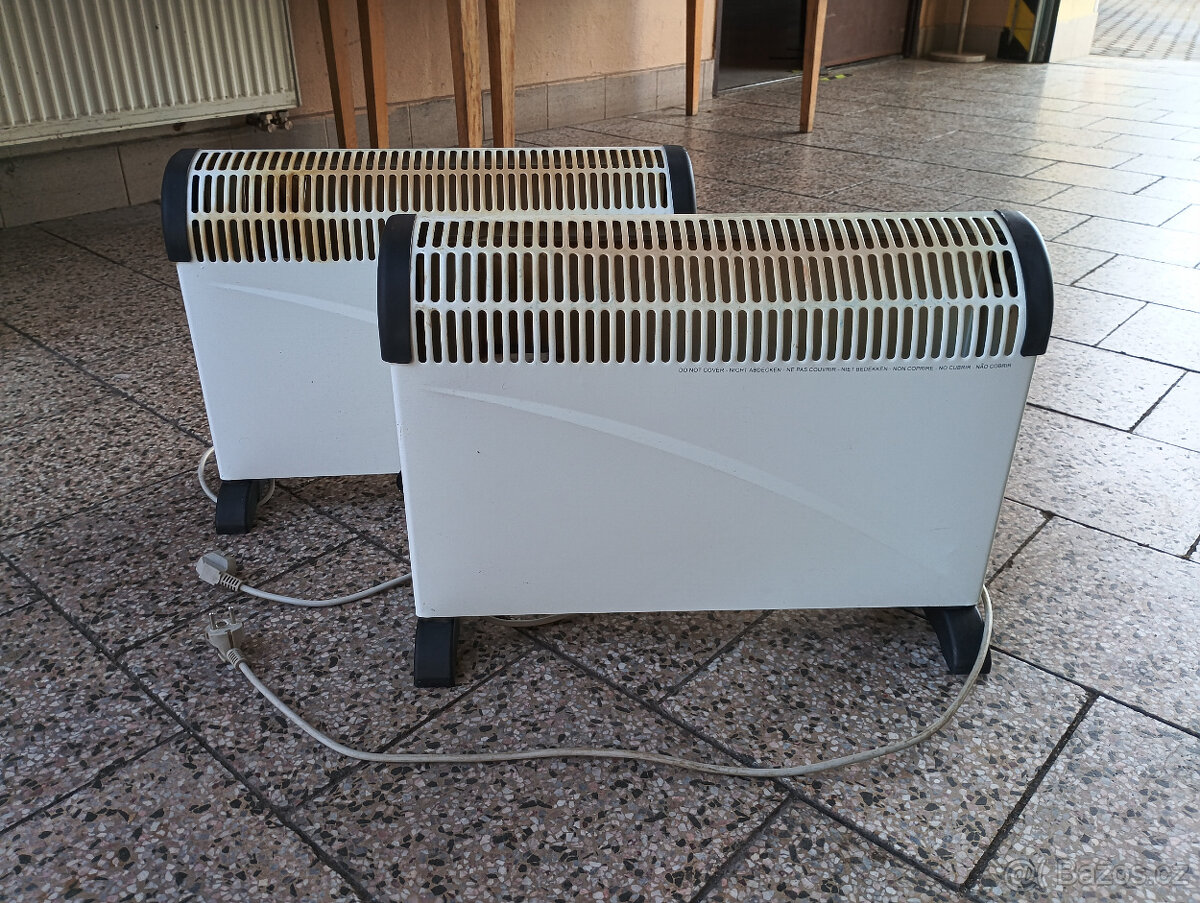 Prodám 2 ks přenosných el. ohřívačů - konvektorů AMBOSS EXCLUSIVE CH 1005, 3 stupně výkonu - 750/1250/2000 W, napětí 230 V. Starší, ale plně funkční. Cena 600,-/ks, lze i jednotlivě. Dohoda možná.