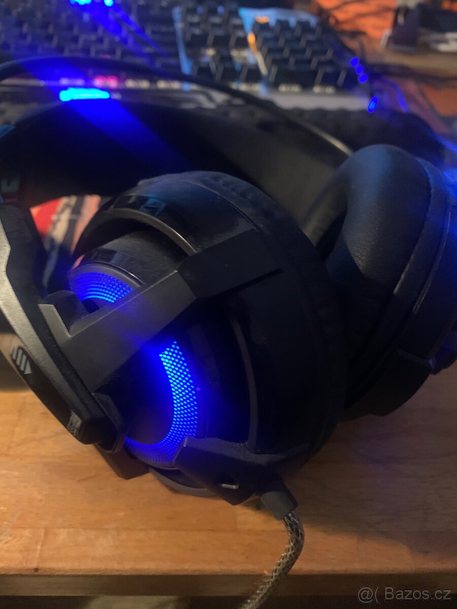 Kvalitní nepoužívané herní sluchátka s podsvícením, vibracemi a mikrofonem