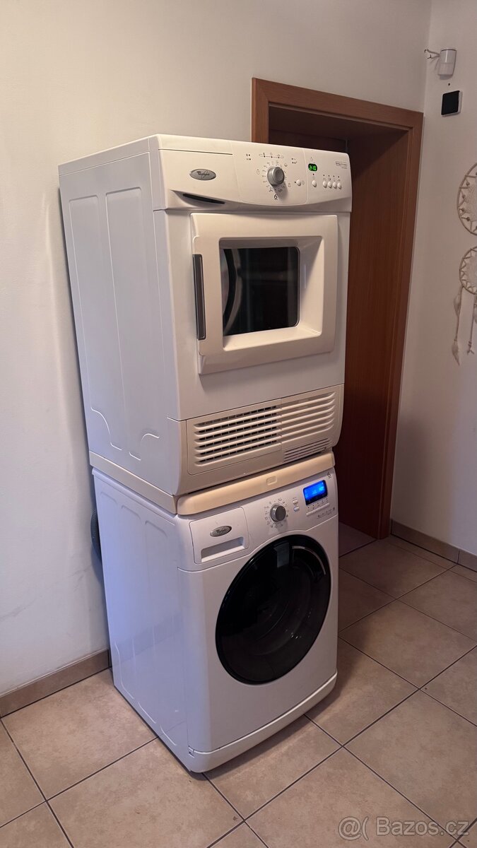 Prodám pračku (8kg) se sušičkou (8kg) Whirlpool. 6. smysl, včetně mezikusu.