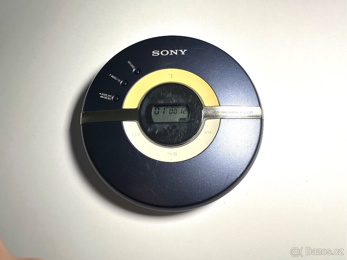 Discman SONY D-EJ100 plně funkční. Funguje na dvě tužkové baterie (AA) Má mnoho funkcí a nastavení. Pouze vnitřní část pouzdra pro baterie je ve stavu jak na foto - na funkci to nemá žádný vliv - funguje zcela bez problému. Pro více informací můžete napsat.