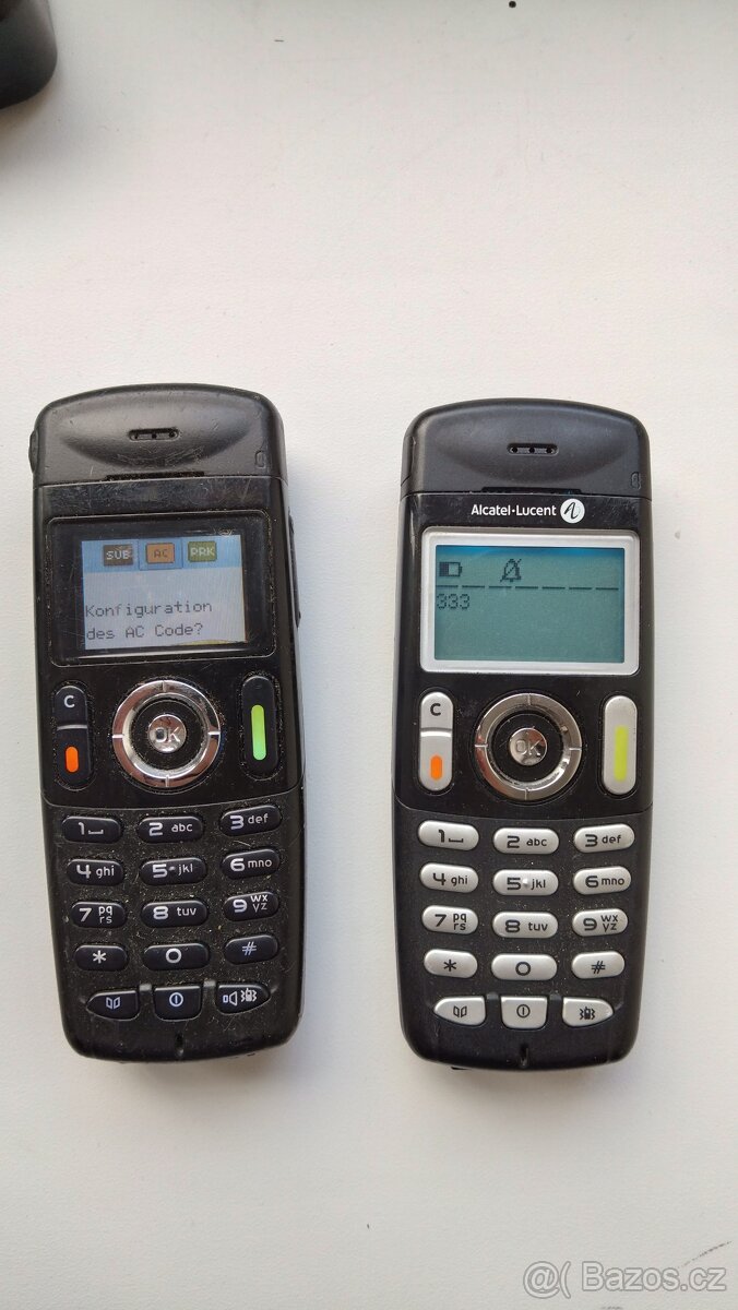 Prodám sadu dvou bezdrátových telefonů Alcatel-Lucent 300 DECT včetně tří originálních nabíjecích kolébek.