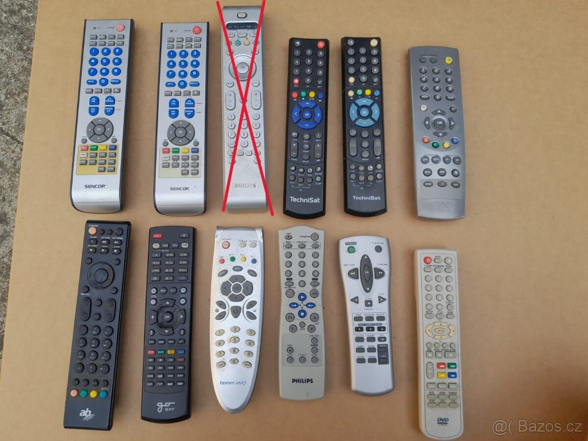 Prodám různé dálkové ovladače k TV, set top boxům, DVD nebo VHS přehrávačům. Měly by být funkční, jsou nepoškozené (nepopraskaný plast). Prodávám po jednotlivých kusech. Napište, o jaký kus máte zájem.
